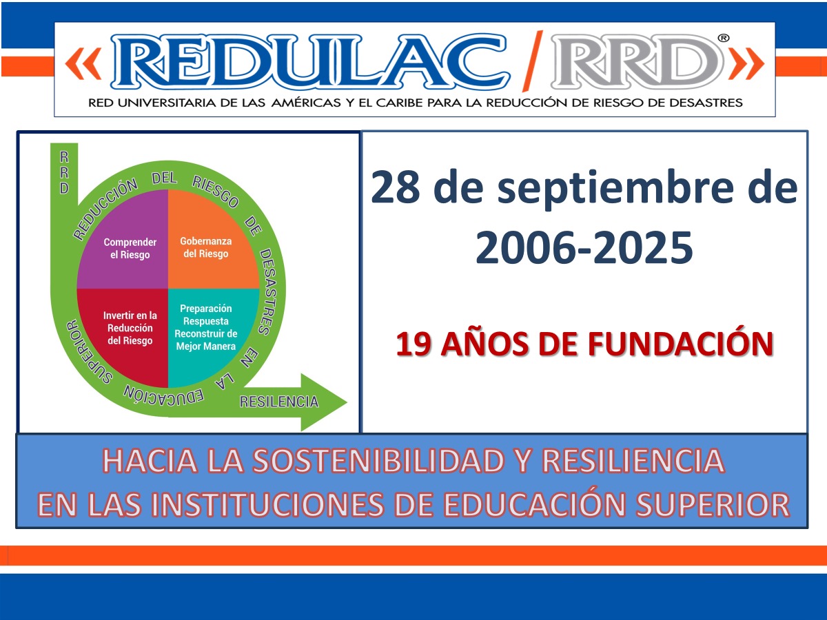 La red universitaria de América Latina y el Caribe para la Gestión y la Reducción de Riesgos de Emergencias y desastres “REDULAC /RRD” está cumpliendo 19 años de fundación. Regresa a Inicio