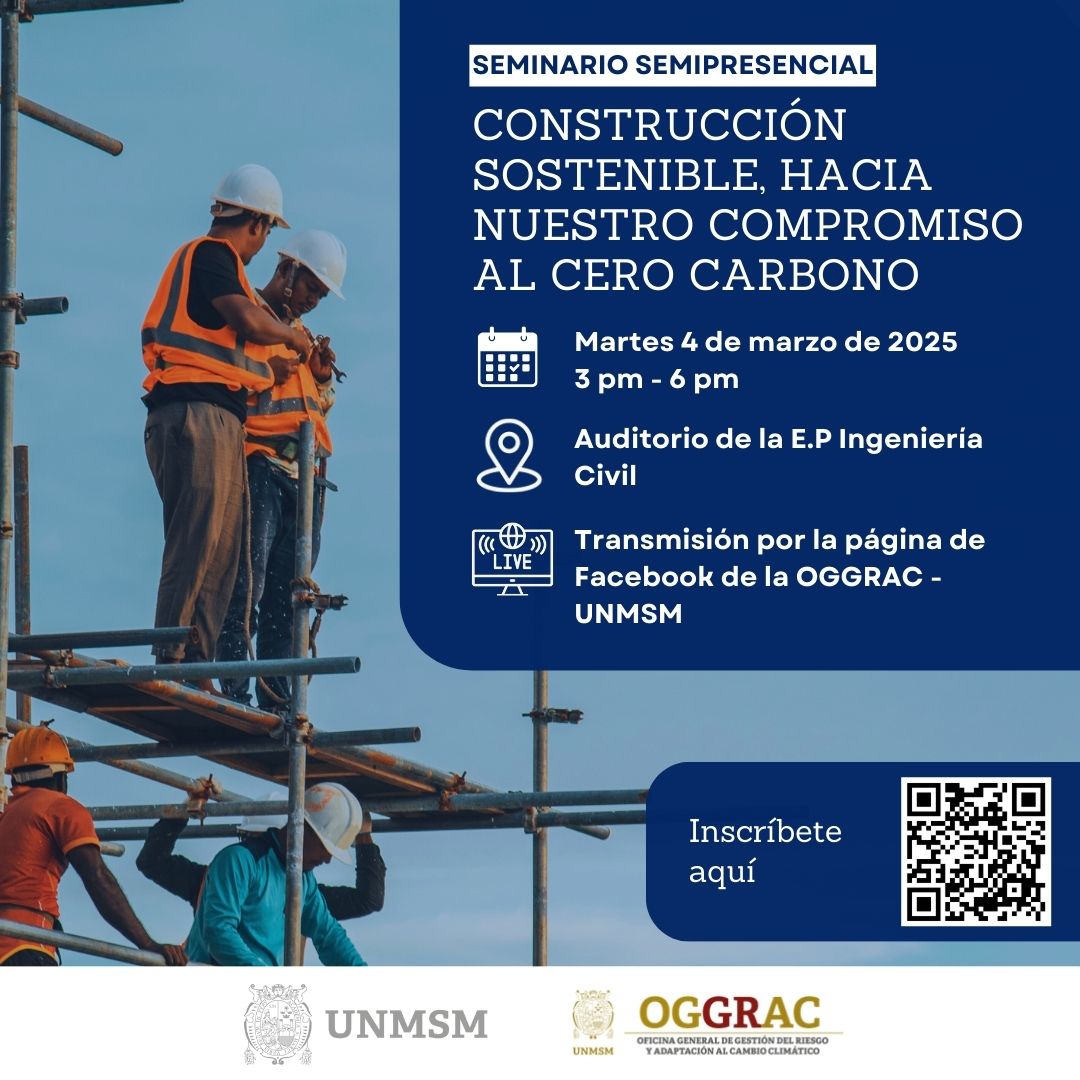 La Oficina General de Gestión del Riesgo y Adaptación al Cambio Climático (OGGRAC) de la UNMSM tiene el agrado de invitar a la participación del seminario:  “Seminario Semipresencial: Construcción Sostenible hacia nuestro compromiso 0 carbono” DETALLES DEL EVENTO: Fecha:  Martes 04 de marzo de 2025 Hora: 03:00 PM Lugar:Auditorio de la EP Ingeniería Civil Modalidad: Semipresencial  […]