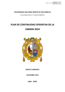 Este plan tiene como objetivo general establecer procedimientos y responsabilidades para el desarrollo de las actividades críticas ante la interrupción prolongada de las operaciones de la Universidad Nacional Mayor de San Marcos.